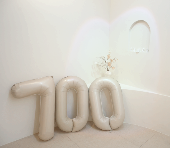 한쪽엔 사장님께서 서비스로 준비해 주신 700 숫자 대형 풍선과 최근 유행하는 조명 스튜디오 공간도 있습니다.