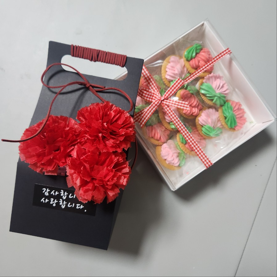직접 만든 카네이션 바구니와 카네이션머랭쿠키를 함께 준비했다고 했어요. 너무 예쁘죠 ?!?! ㅎㅎ